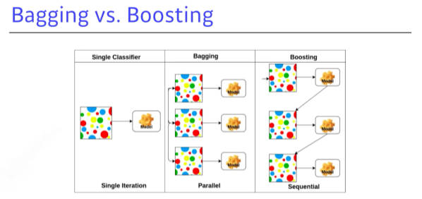 - 배깅 - 보통 앙상블 : 한개의 모델로 쓸 때보다 좋은 성능을 낼 때가 많음.