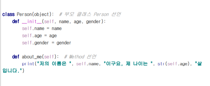 - class는 설계도, instance는 실제 구현체. 비유하자면 class는 붕어빵 틀, instance는 붕어빵. 한 붕어빵 틀(class)로 여러 종류의 붕어빵(instance)를 만들 수 있음.